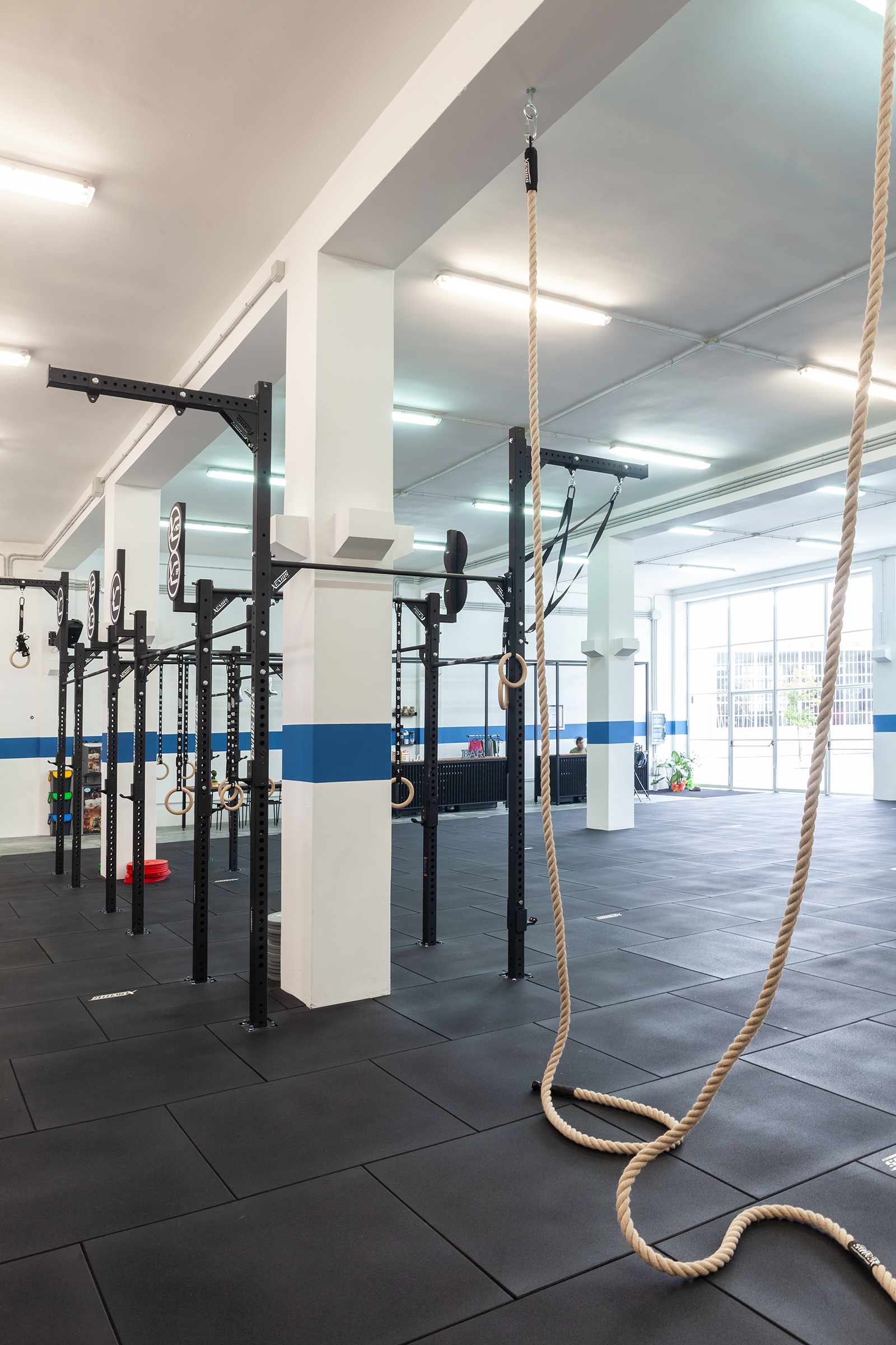Il box di crossfit è posto a quota -4,5 mt rispetto al livello stradale ed è stato ricavato in un locale artigianale realizzato negli anni '70 ed impiegato in passato per la lavorazione di componenti metalliche per l'arredo.