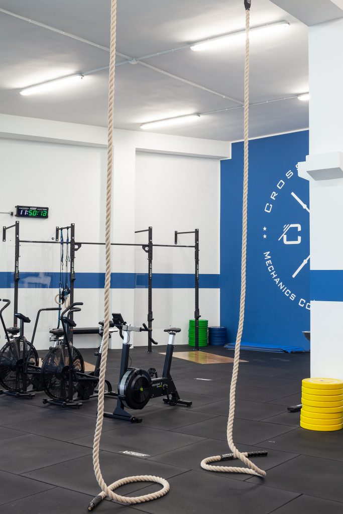 Il box di crossfit è posto a quota -4,5 mt rispetto al livello stradale ed è stato ricavato in un locale artigianale realizzato negli anni '70 ed impiegato in passato per la lavorazione di componenti metalliche per l'arredo.