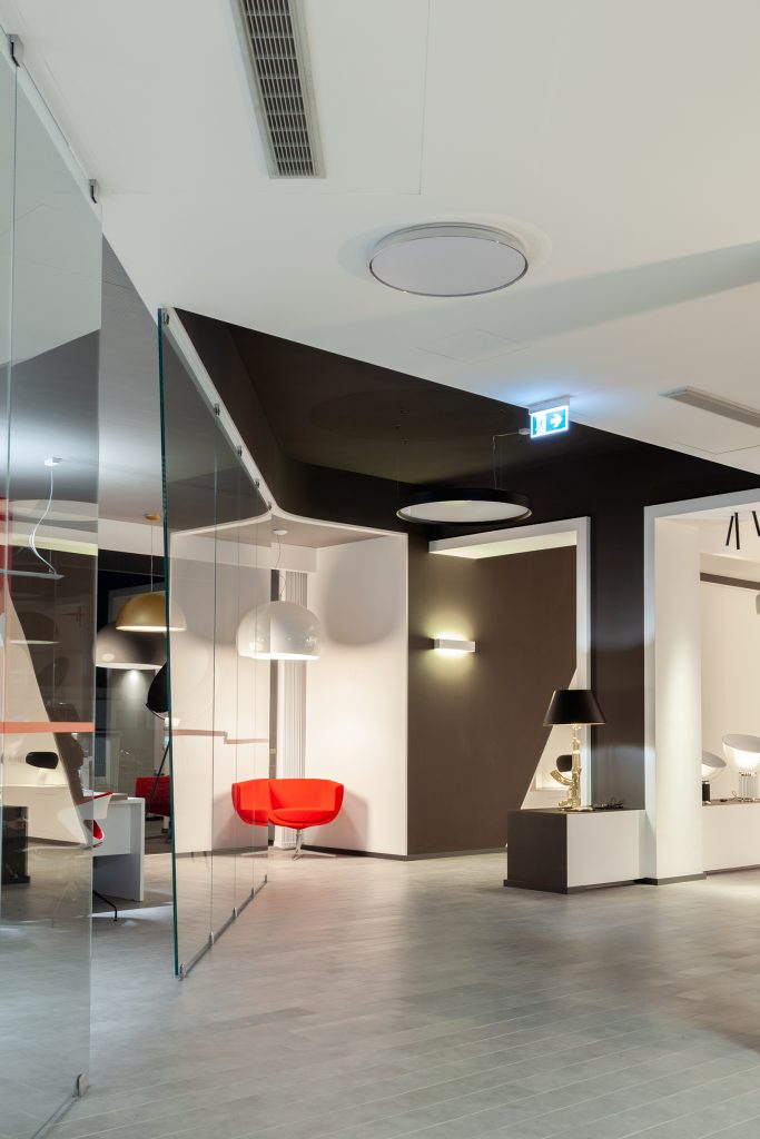 Il risultato finale è uno showroom molto funzionale per l'esposizione delle differenti tipologie di corpi illuminotecnici, per le molteplici sorgenti luminose e la loro gestione, potendo contare su un efficiente impianto domotico.